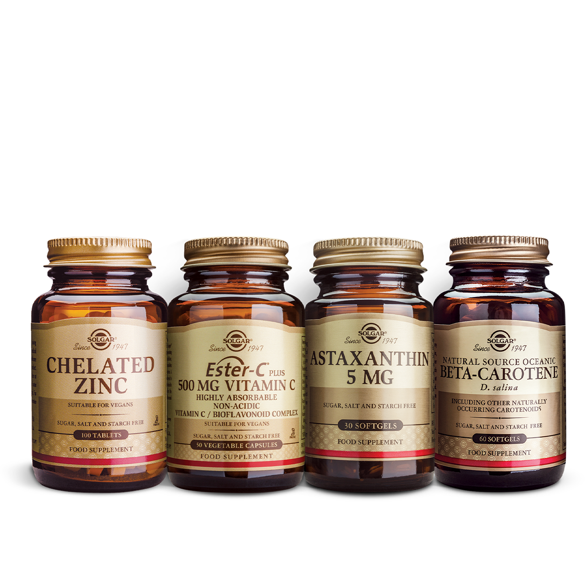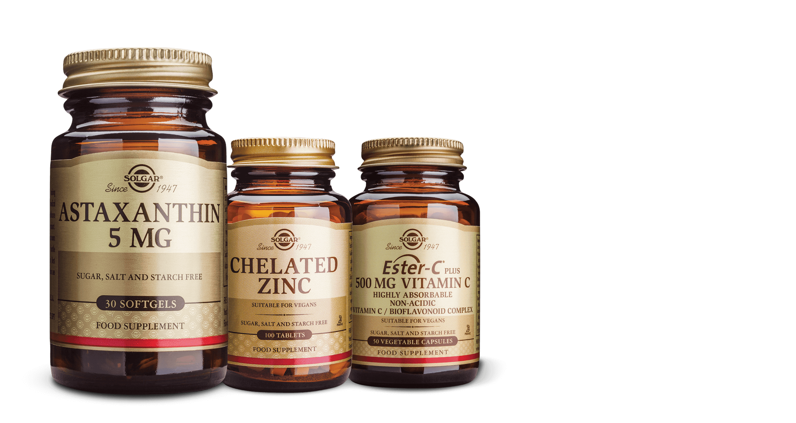Vaša je koža posebno osjetljiva na uticaj sunca te joj je potreban Solgar Astaksantin 5 mg CAPS A30 u kombinaciji sa Solgar Cink Kelat TBL A100 i Solgar Ester-C PLUS 500 mg CAPS A50