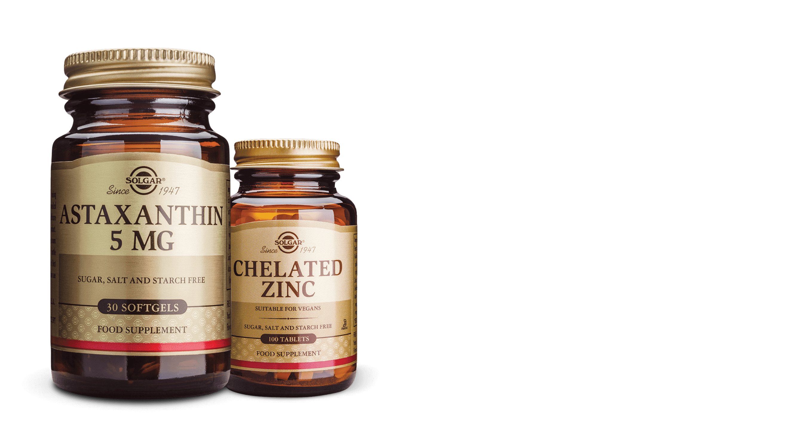 Astaksantin je crveni pigment koji pripada skupini karotenoida i pomaže u pripremi kože za izlaganje suncu 1, 2, dok Cink pridonosi zaštiti ćelija od oksidativnog stresa 3.